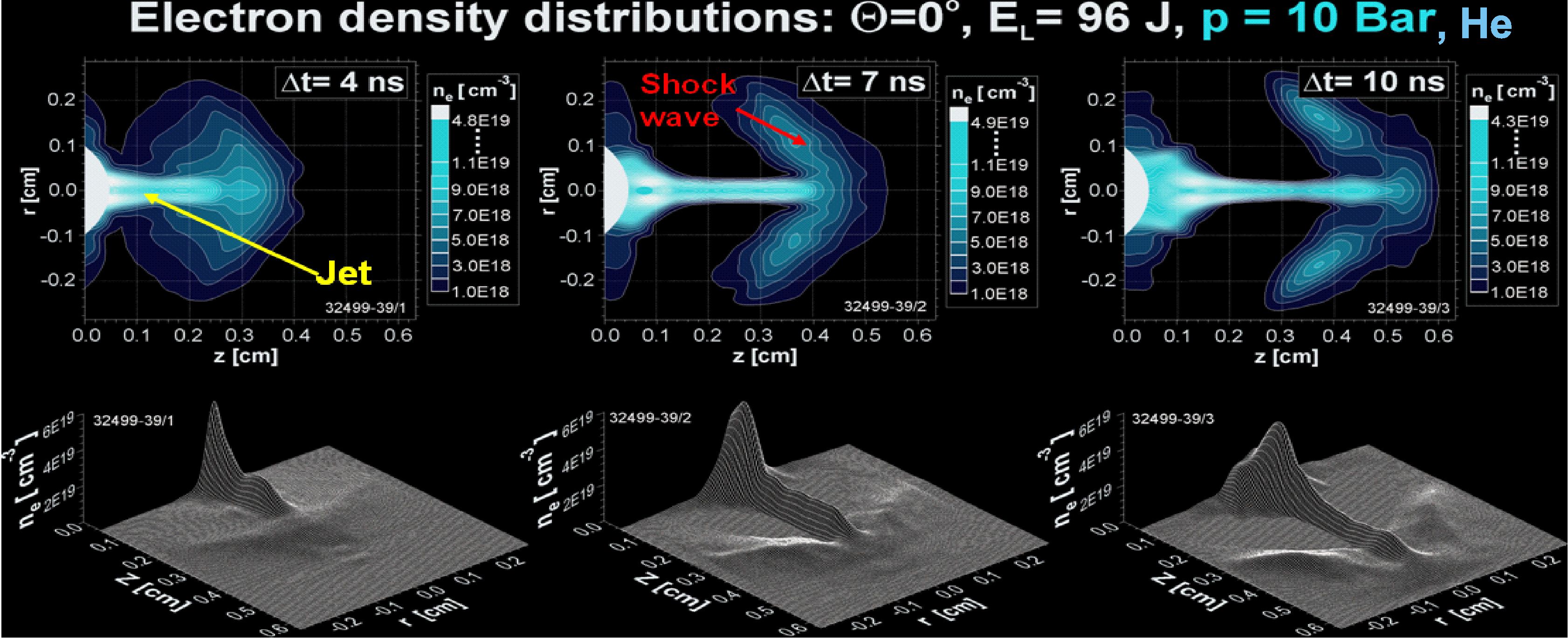 Rozkłady koncentracji plazmy zarejestrowane za pomocą interferometru 3-kadrowego obrazujące oddziaływanie
